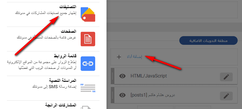 ثانيا أضافة اداة التسميات بعد تركيب الكود :