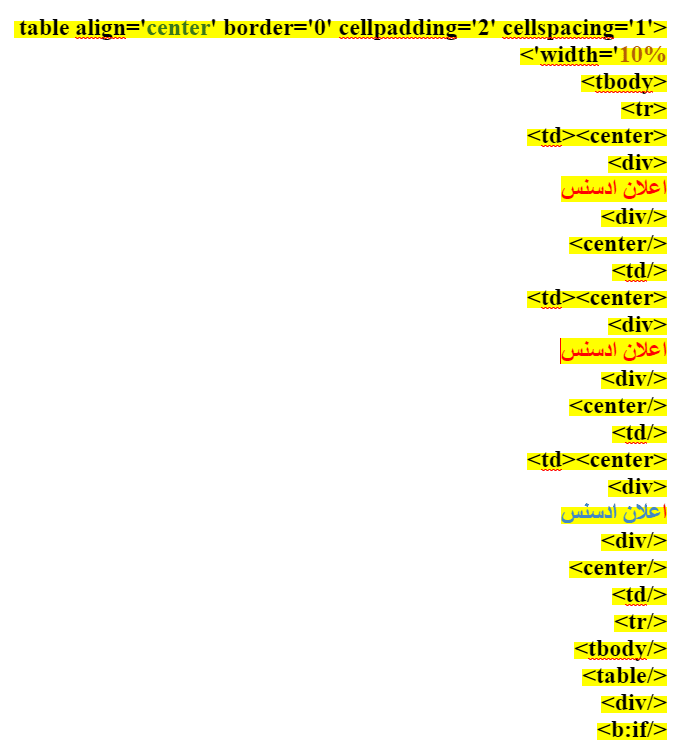 تركيب اكثر من اعلان ادسنس في سطر واحد بمدونة بلوجر