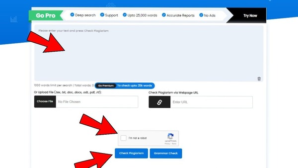 - لا يمكنك فحص المقالات التي تجاوز 1000 كلمة في النسخة المجانية بينما في النسخة المدفوعة لا يوجد حد لعدد الكلمات التي تستطيع فحصها.