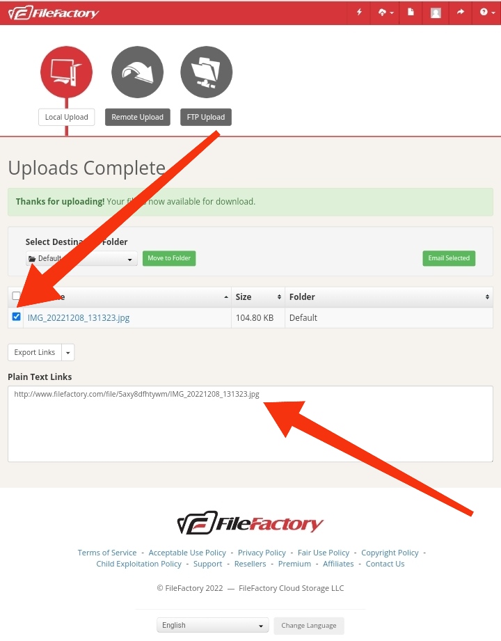 4 وفي الأخير سوف تقوم بالنقر على المربع الموجود جانب الملف، وبعدها ستجد رابط الملف في خانة "Plain Text Links"، وكل شخص قام بتحميل الملف من ذلك الرابط سوف تربح نسبة من الأرباح.