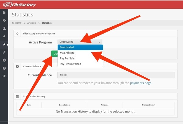 3 بعد الضغط عليه سوف تظهر لك واجهة جديدة، وكل ما عليك فعله هو النقر على كلمة "deactivated"، وبعد ستظهر لك مجموعة من الإختيارات كل ما ستفعله سوى النقر على كلمة "max affiliate"وبعدها قم بالنقر على كلمة "update".