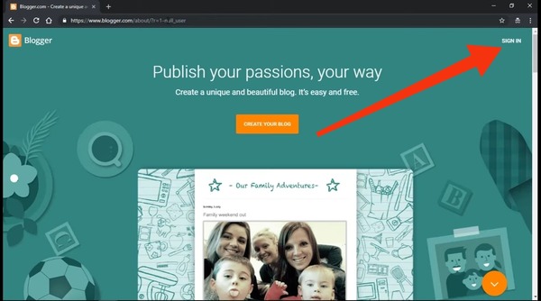 2 سوف تظهر لك الواجهة الرئيسية لموقع بلوجر، وكل ما عليك فعله سوى أن تقوم بالنقر على "sign in" الموجودة في أعلى الصفحة الرئسية.