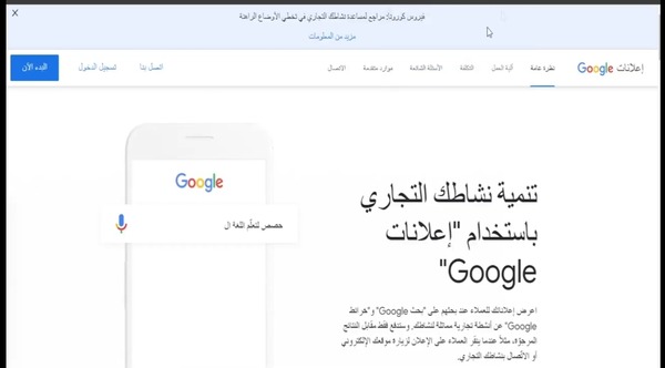 2 سوف تظهر لك الواجهة الرئيسية لموقع ads google، كل ما عليك فعله هو أن تقوم بالنقر إلى "البدء الآن".