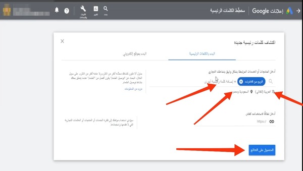 2 سوف تظهر لك واجهة جديدة، وكل ما عليك سوى النقر على " إكتشاف الكلمات المفتاحية".