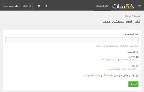 3. كيفية التسجيل في موقع خمسات