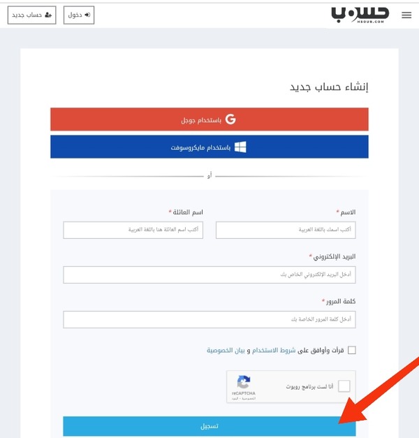 2- بعد الضغط عليه سوف تظهر لك الواجهة الرئيسية للموقع، كل ما عليك فعله هو ان تقوم بالنقر على "حساب جديد" الموجود في أعلى الصفحة الرئيسية للموقع.