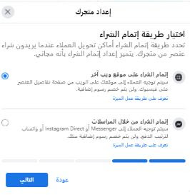 ستحتاج في البداية ان تقوم باختيار طريقة إتمام الشراء، حيث يمكنك اختيار عملية الشراء على موقع ويب آخر، مثل: متجرك الإلكتروني على شوبيفاي أو ووكومرس على سبيل المثال.